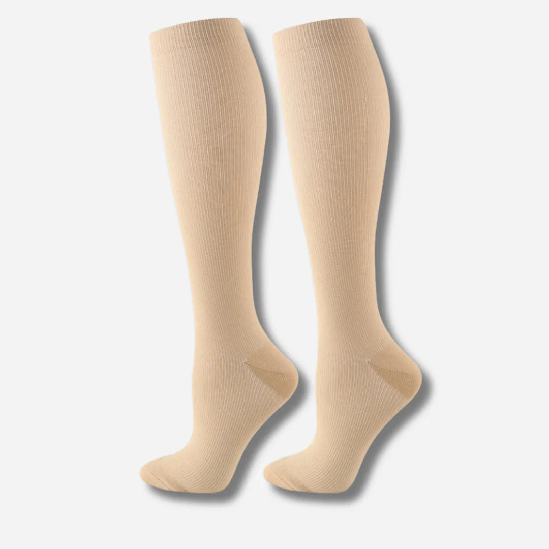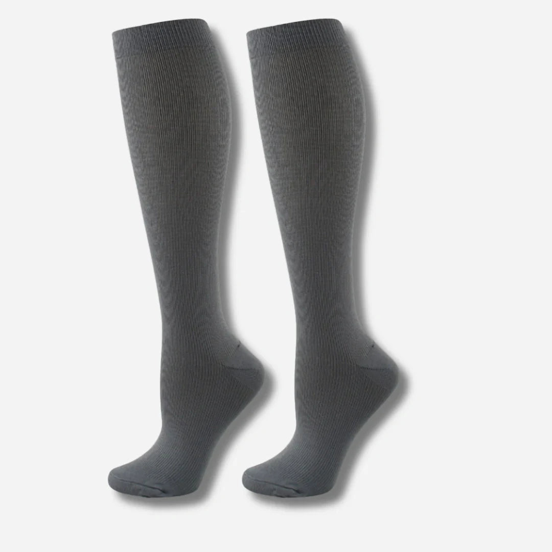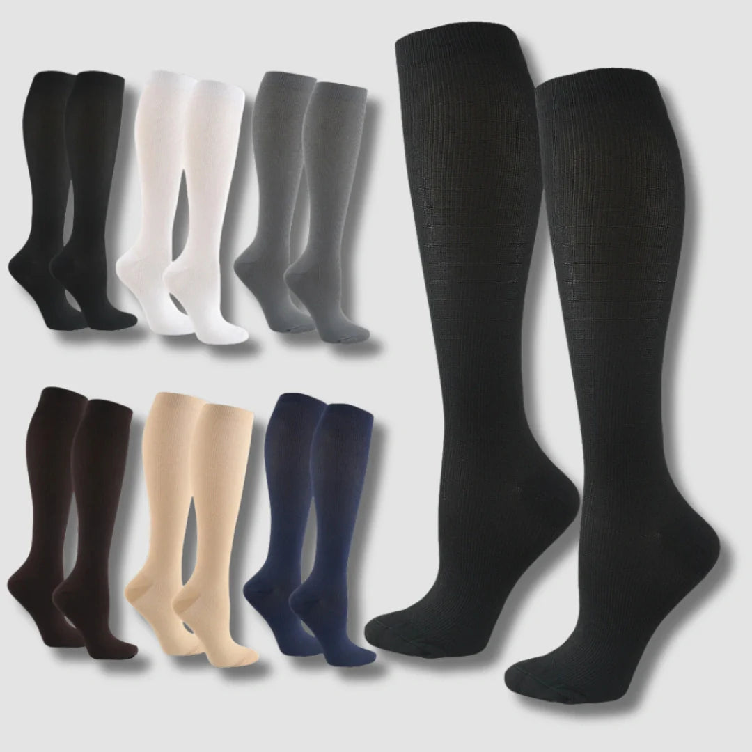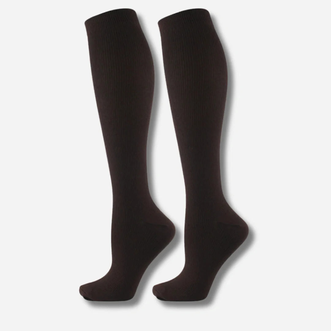 En stilren kompressionsstrumpa med kopparfiber, graderat tryck och förbättrad passform – utvecklad för att minska trötthet, förbättra cirkulation och ge stöd hela dagen. Perfekt för dig som sitter, står eller går mycket och vill ha piggare ben.
